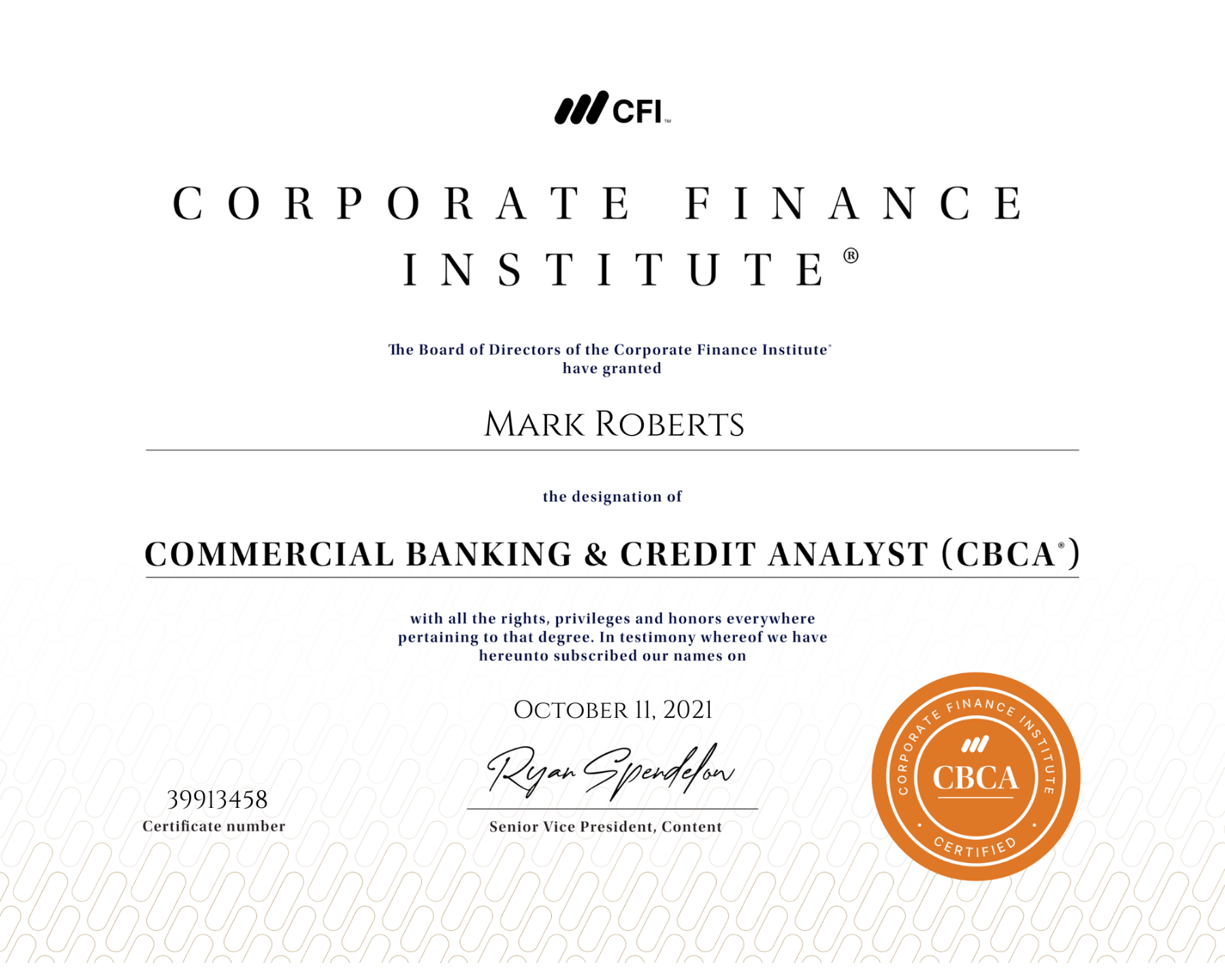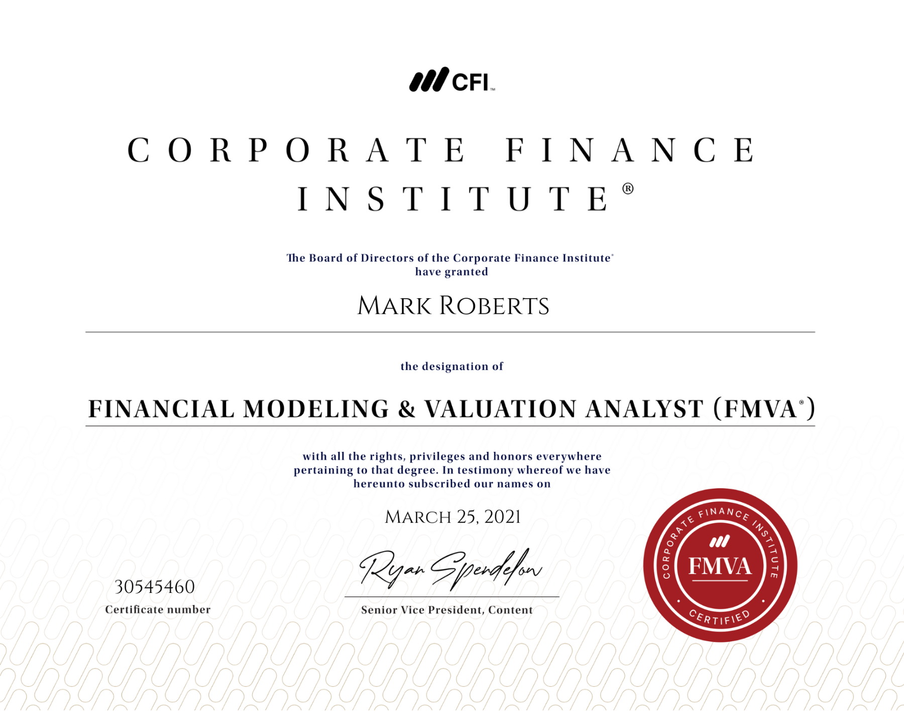 - Designations: FMVA, CBCA